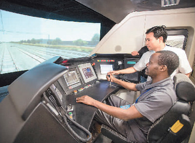 日前,來自泰國、斯里蘭卡、老撾等13個國家的63名鐵路管理人員來到武漢高鐵訓練段進行參訪交流活動。在“一帶一路”背景下,2015年開始武漢高鐵訓練段已舉辦了泰國、老撾等14批涉外鐵路技能培訓班,培訓涉外學員400余人次。圖為來自肯尼亞的賈斯特斯·卡洛·姆文加在高鐵模擬駕駛倉內(nèi)體驗實際操作。 新華社記者 肖藝九攝