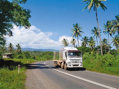 瓦努阿島是南太平洋島國斐濟第二大島。中鐵一局斐濟公司在島上修建的納布瓦魯高速公路和布扎貝高速公路解決了人們出行的“老大難”問題,有力拉動了經(jīng)濟發(fā)展,被斐濟民眾譽為“斐中兩國友好的紐帶”“共同發(fā)展致富的高速路”。圖為一輛卡車行駛在布扎貝高速公路上。 新華社記者 張永興攝