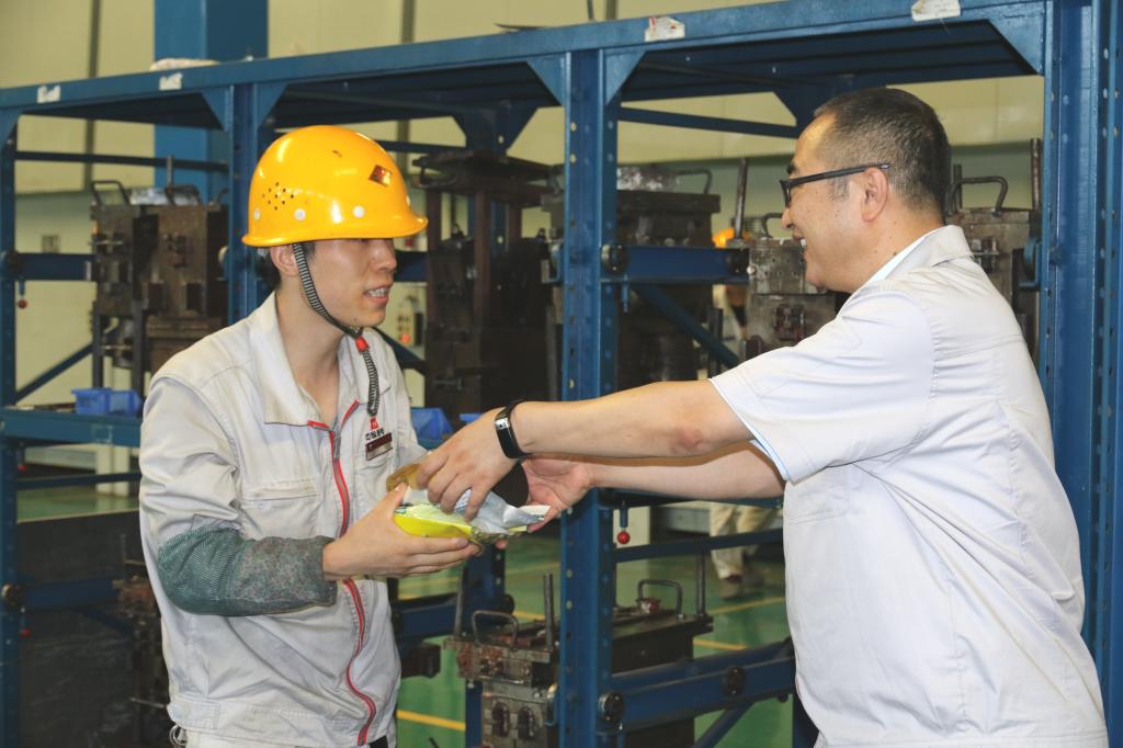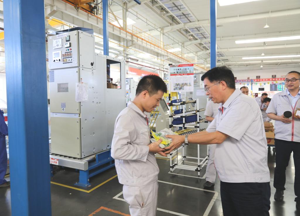 烈日高溫,酷暑來襲,西電寶雞電氣各生產(chǎn)班組的職工們與熱浪作斗爭,堅(jiān)守奮斗在一線各個工作崗位,趕生產(chǎn)、保履約。7月31日下午,為關(guān)心關(guān)愛一線職工,西電寶雞電氣班子成員一行,向一線職工表示慰問,送上清涼。