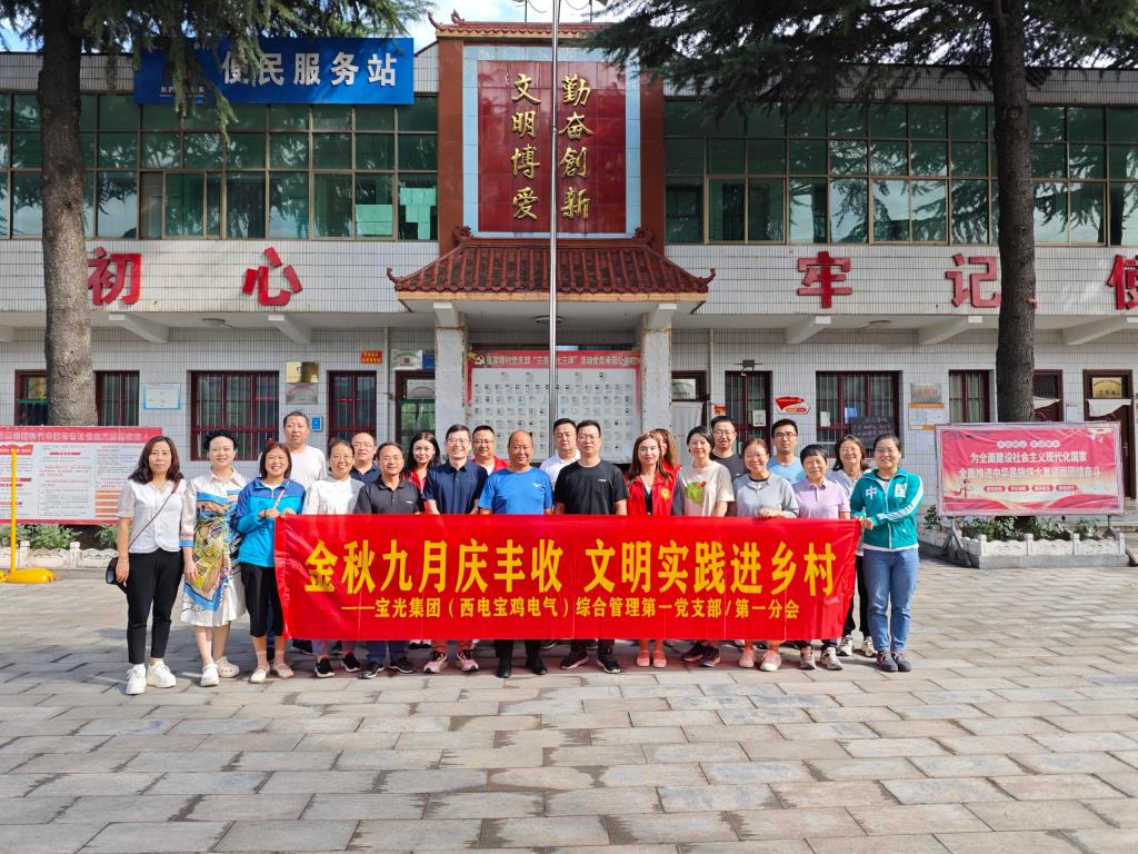 為深入學(xué)習(xí)貫徹落實習(xí)近平新時代中國特色社會主義思想和黨的二十大精神,不斷開創(chuàng)公司精神文明建設(shè)新局面,為企業(yè)高質(zhì)量發(fā)展提供強大精神動力和豐潤道德滋養(yǎng),9月7日(周六)寶光集團(西電寶雞電氣)綜合管理第一黨支部、綜合管理第一分會,前往西電寶雞電氣新時代文明實踐站——磻溪鎮(zhèn)張家塬村開展“金秋九月慶豐收 文明實踐進鄉(xiāng)村”結(jié)對共建活動。