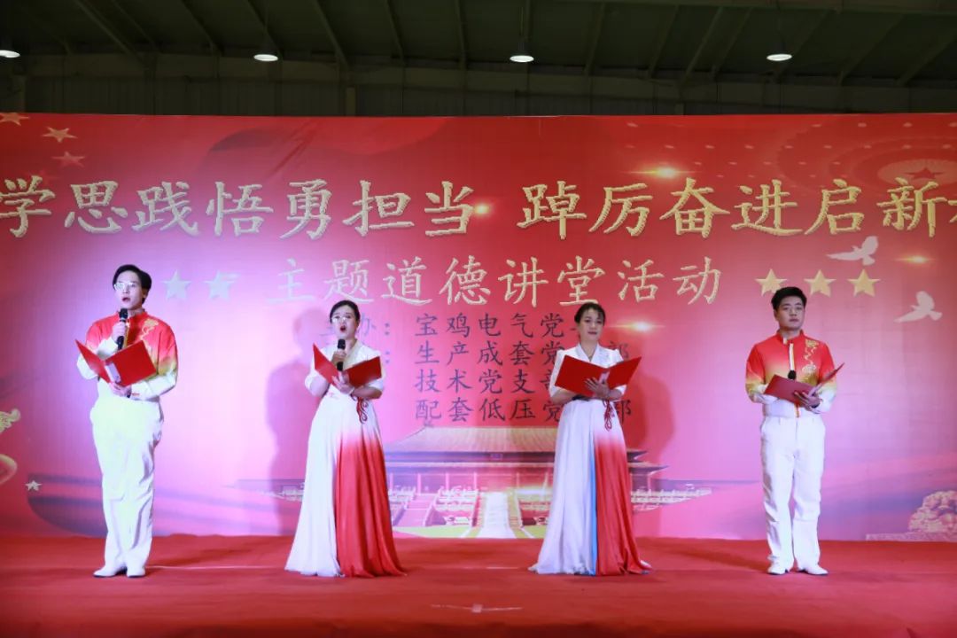 為深入學(xué)習(xí)貫徹黨的二十大精神,扎實(shí)開展學(xué)習(xí)貫徹習(xí)近平新時(shí)代中國特色社會(huì)主義思想主題教育,傳播道德故事,推動(dòng)道德實(shí)踐,匯聚道德力量,形成道德風(fēng)尚,積極營造學(xué)習(xí)、崇尚、爭當(dāng)?shù)赖履7兜牧己梅諊?,為西電寶雞電氣高質(zhì)量發(fā)展及“十四五”登高目標(biāo)提供強(qiáng)大精神動(dòng)力,12月15日下午,由西電寶雞電氣黨委主辦,生產(chǎn)成套黨支部、技術(shù)黨支部和配套低壓事業(yè)部黨支部聯(lián)合承辦的“學(xué)思踐悟勇?lián)?dāng) 踔厲奮進(jìn)啟新程”道德講堂活動(dòng)順利舉行。寶光集團(tuán)(西電寶雞電氣)黨委副書記、紀(jì)委書記、工會(huì)主席姚書勤出席活動(dòng)并作點(diǎn)評(píng)講話,寶光集團(tuán)(西電寶雞電氣)副總經(jīng)理趙紅衛(wèi)、成鵬志出席活動(dòng)。