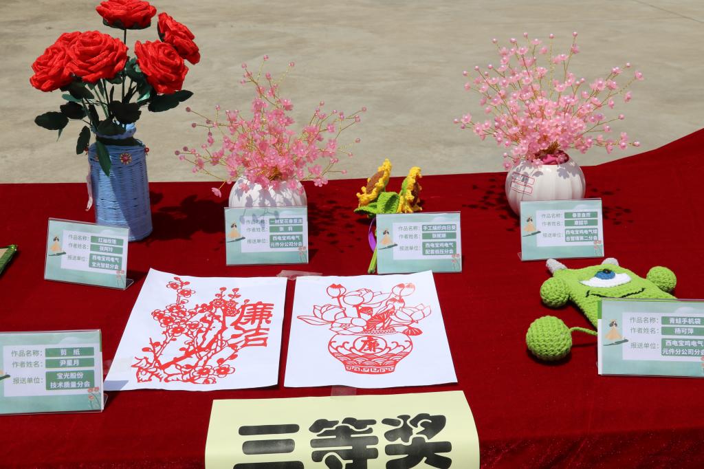 現(xiàn)場擺放了各式各樣的女職工手工作品,仿佛進(jìn)入了一個五彩斑斕的藝術(shù)世界,每一件作品都散發(fā)著獨特的魅力,讓人目不暇接。職工們紛紛駐足欣賞,不時發(fā)出陣陣贊嘆聲。這些手工作品不僅展示了女職工們的才藝和創(chuàng)造力,也傳遞了她們對生活的熱愛和追求。